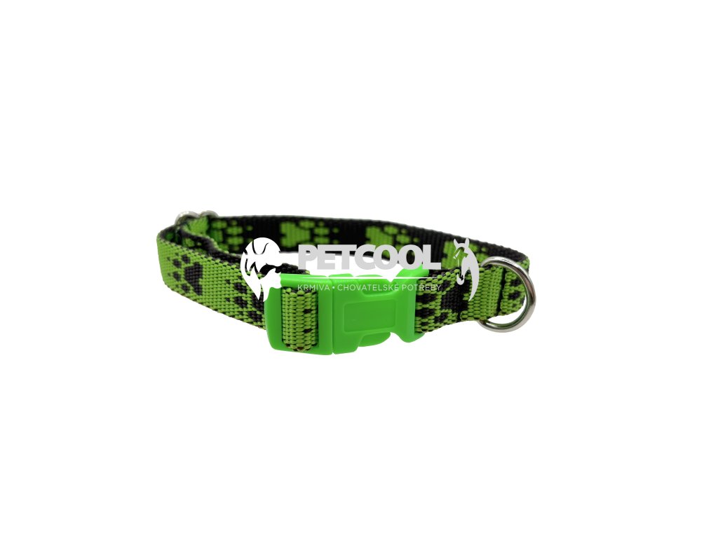 Nylonový obojek v limetkové barvě s motivem hnědé tlapky.