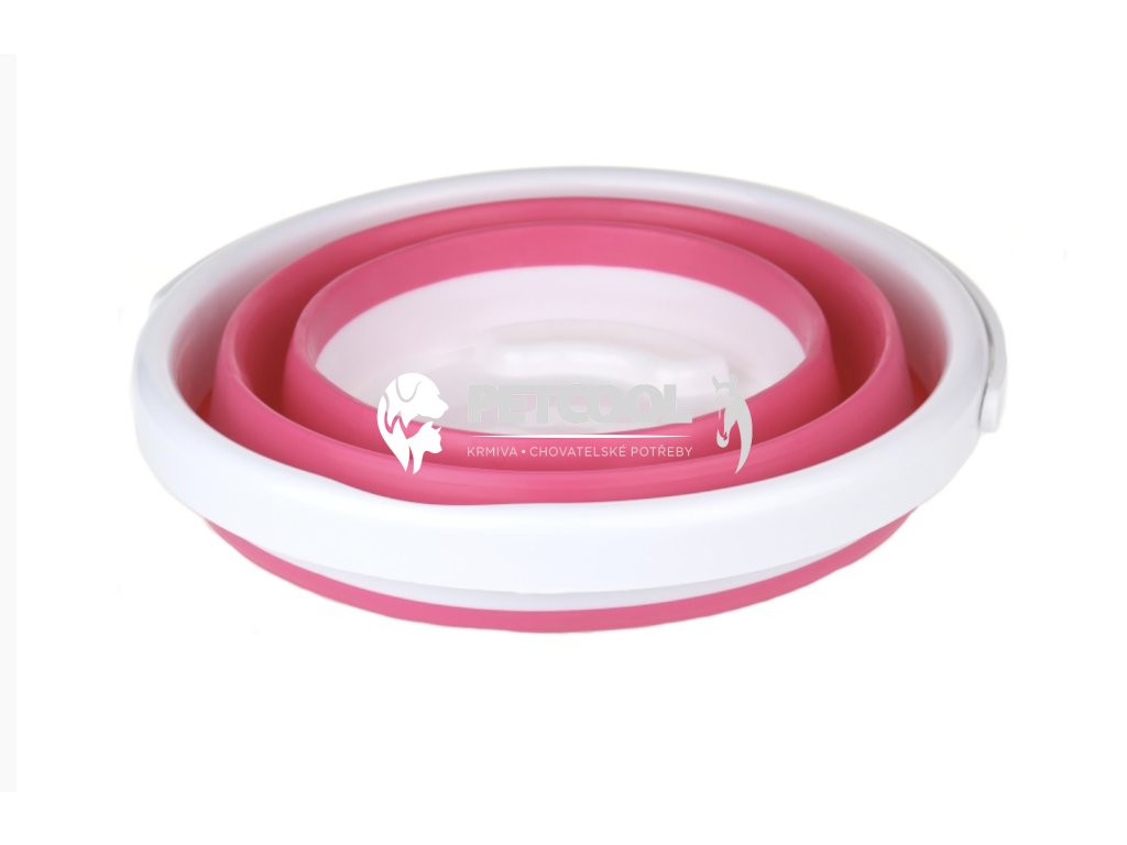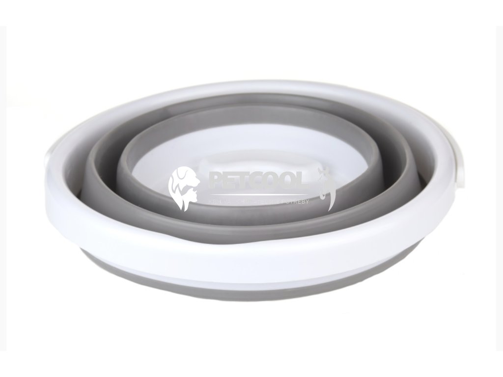 Cestovní skládací kyblík na krmivo nebo vodu. Ideální řešení pro cestování. Při návratu domů zase využijete ouško, za které ho můžete doma pověsit. Výhodou je možnost rozložení nejen na celý kyblík, ale i na misku, která je psům povědomější.