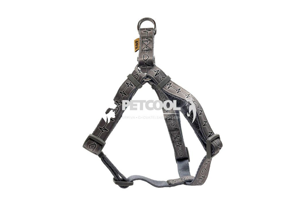 Nylonový postroj pro psy z měkkého a příjemného popruhu v šedé barvě s motivem EKG. Postroj má pevnostní kovová oka a umělou rychlosponu. Postroj je pevně prošitý a štelovatelný v oblasti krku, hrudníku a prsou.