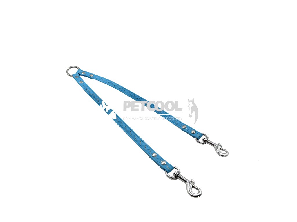Koženková rozdvojka pro dva psy malých plemen je vyrobena z velmi jemné a příjemné koženky, zdobené vlnkou se třpytem. Spojena cvočky pro vysokou pevnost.