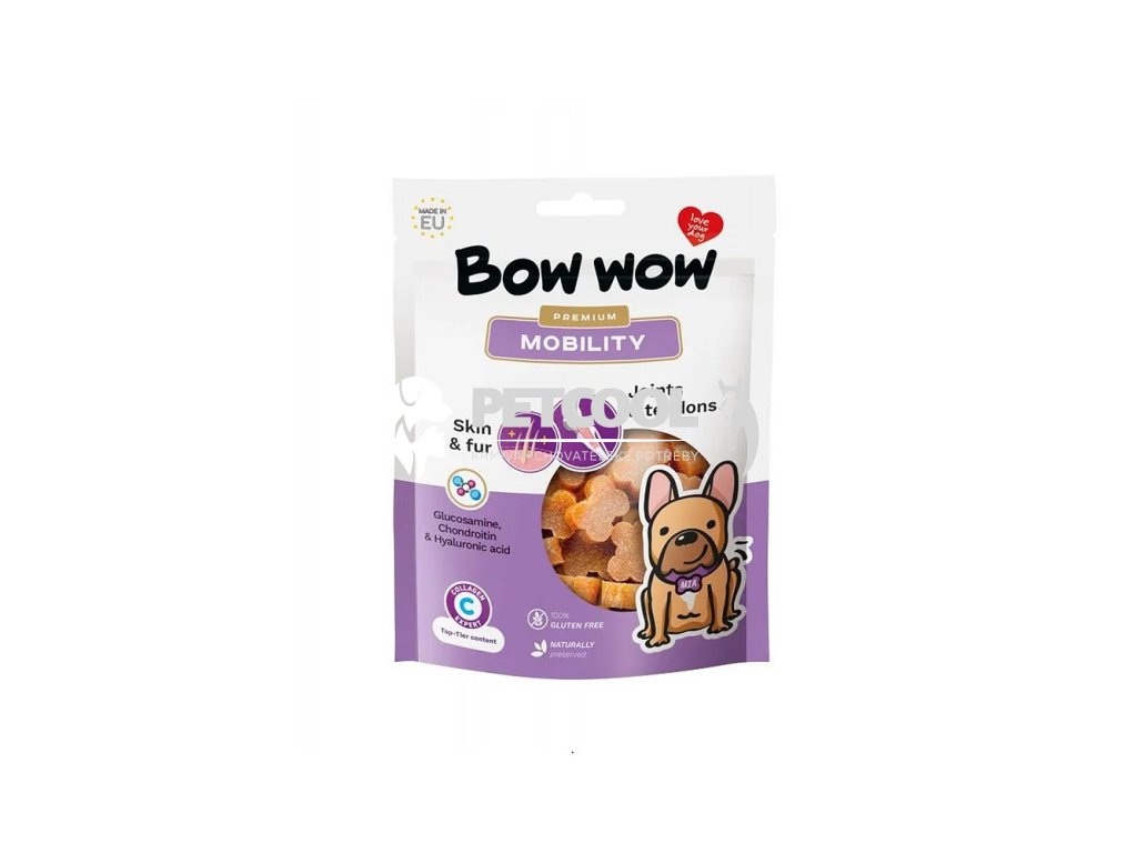 Pamlsky ve tvaru kostičky Bow Wow Premium Mobility pro podporu zdraví kloubů a flexibility, což je zásadní pro udržení aktivního života, zejména u starších psů nebo těch, kteří jsou náchylní k problémům s pohybovým aparátem. Kombinace glukosaminu, chondroitinu a kyseliny hyaluronové poskytuje psovi komplexní podporu kloubního aparátu, pomáhá udržovat pružnost chrupavek, chránit kloubní tkáň a zlepšovat celkovou pohyblivost a komfort. Kurkuma podporuje zdraví kloubů a pomáhá udržovat optimální trávení díky svým protizánětlivým a antioxidačním vlastnostem. Tato potravina také podporuje imunitní systém a může přispět k lepší celkové vitalitě a dlouhověkosti psa. Pamlsky jsou navrženy tak, aby byly bezpečné pro žvýkání, poskytující psovi nejen zábavu, ale také příjemný způsob, jak udržet zuby a dásně v kondici.