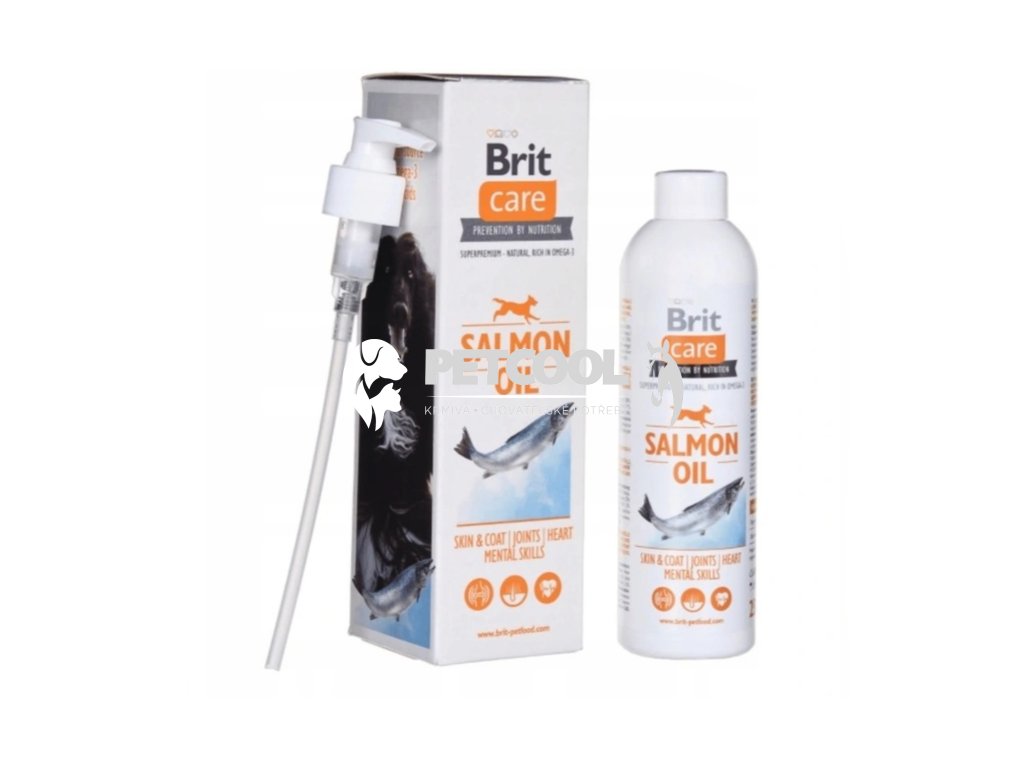 Lososový olej Brit Care Salmon Oil pomáhá vybalancovat poměr Omega 3 a Omega 6. Přírodním zdrojem Omega 3 mastných kyselin (EPA + DHA + DPA). Je přírodním zdrojem Omega-3 nenasycených mastných kyselin. Zlepšuje kvalitu kůže a srsti, podporuje zdraví kloubů, pohybového aparátu, nervové a oběhové soustavy.