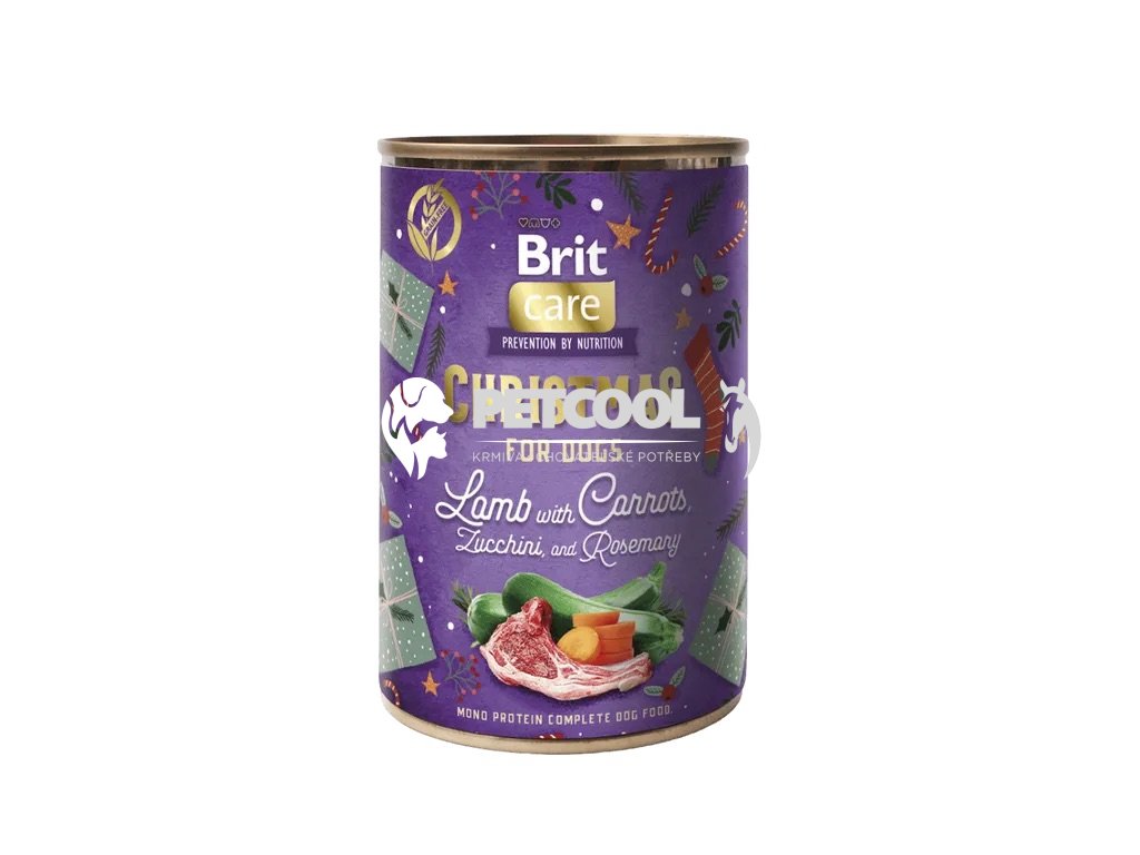 Brit CHRISTMAS Lamb with Carrots, Zucchini and Rosemary pro všechny dospělé psy, kompletní krmivo s vyváženou výživou v limitované vánoční edici s recepturou "Česká vánoční večeře" s jehněčím masem, karotkou, brambory, cuketou a rozmarýnem. Vhodné pro psy citlivé na krmivo, jelikož v konzervě je pouze protein z jehněčího masa. Receptura s obsahem jednoho proteinu je vhodná ke snížení rizika alergií a potravinové intolerance. Umožní psovi užít si štědrovečerní večeři a navíc nutričně vyváženým způsobem.