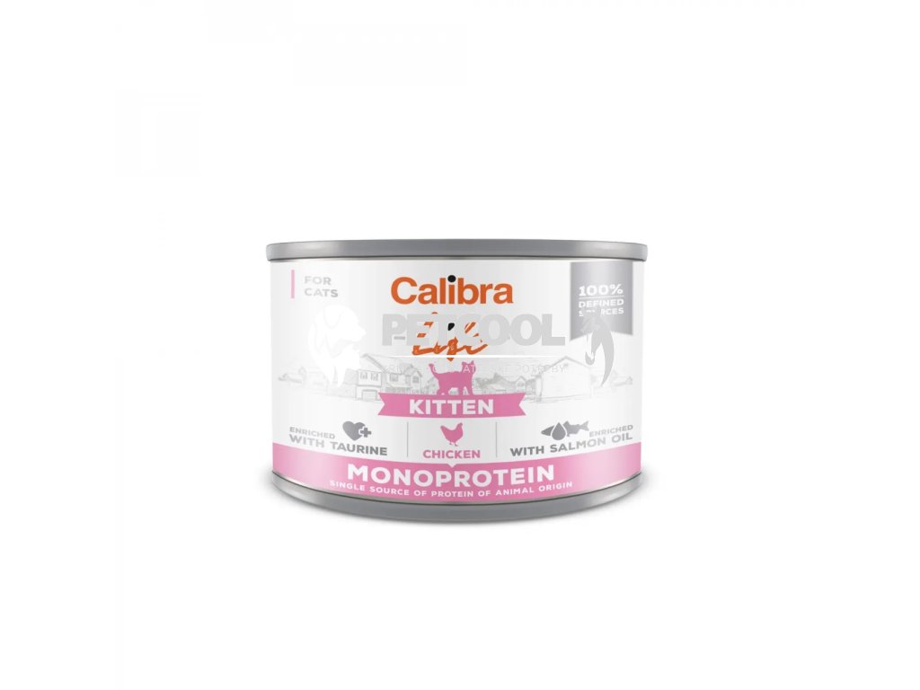 CALIBRA CAT LIFE KITTEN CHICKEN je receptura s kuřecím a kuřecími srdíčky, která je určená pro koťata, březí a kojící kočky. Kompletní vlhké krmivo je založeno na jediném druhu proteinu, receptura je sestavena z limitovaného počtu ingrediencí. Složení konzervy je bezobilné a bezlepkové, což má vliv na lehkou stravitelnost. Receptura bez obsahu obilovin, lepku, sóji, kukuřice, barviv a geneticky modifikovaných surovin.