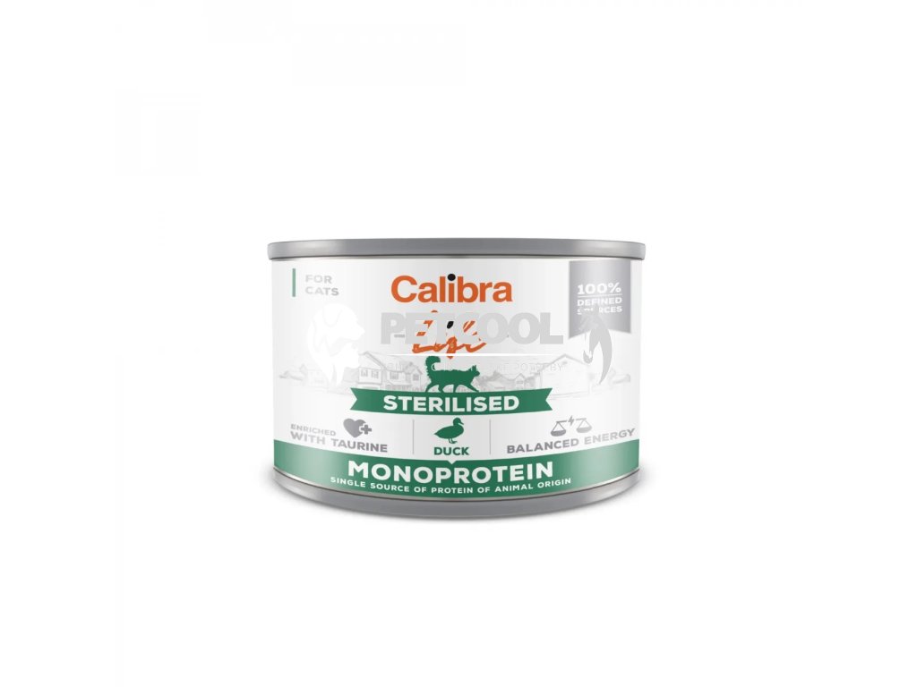 CALIBRA CAT LIFE STERILISED DUCK je receptura s kachním masem, která je určená pro dospělé kastrované a sterilizované kočky. Kompletní vlhké krmivo je založeno na jediném druhu proteinu, receptura je sestavena z limitovaného počtu ingrediencí. Složení konzervy je bezobilné a bezlepkové, což má vliv na lehkou stravitelnost. Receptura bez obsahu obilovin, lepku, sóji, kukuřice, barviv a geneticky modifikovaných surovin.