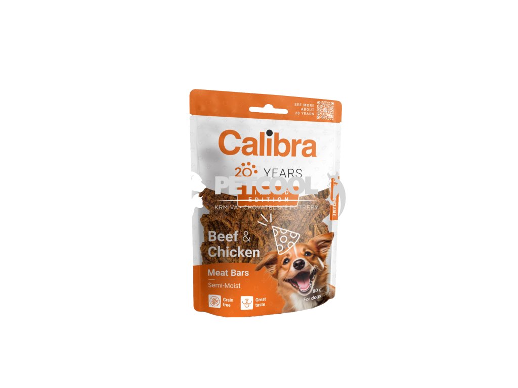 Limitovaná edice pamlsků Calibra ke 20. výročí značky. Receptura těchto lahodných masových tyčinek pro psy je postavena na vynikající chutnosti díky obsahu kuřecího a hovězího. Právě proto jsou tyto pamlsky velmi chutné, a navíc neobsahuji obiloviny. Pamlsky jsou měkké a snadno se lámou na menší kousky.