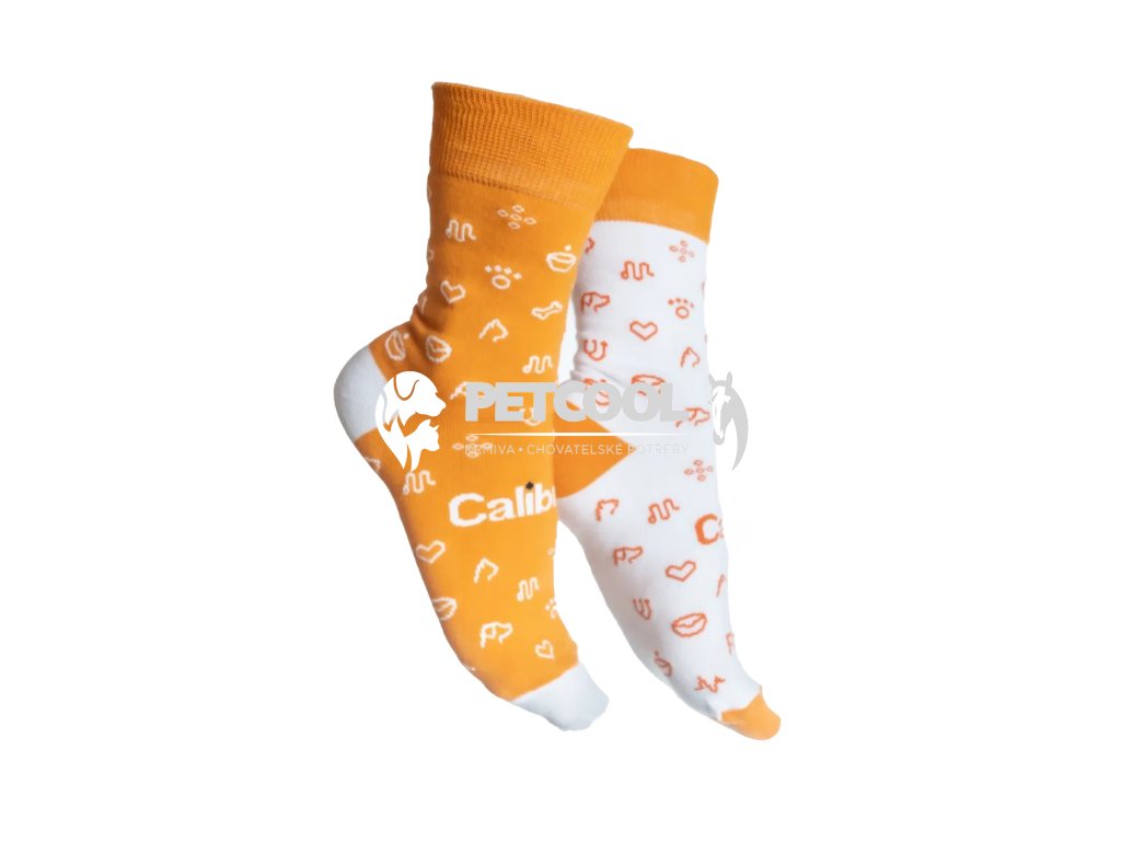 Ponožky Calibra, vhodné pro každou příležitost. Ponožky jsou v bílo oranžové barvě, s logem Calibra a různými motivy. Zvolený polyamid odvádí vlhkost od noh.