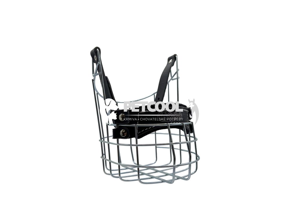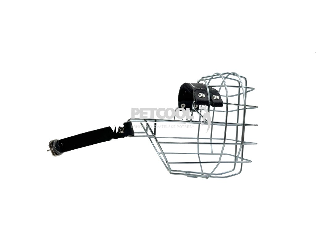 Kovový náhubek pro psy plemen boxer, šarpej a ostatní plemena s podobným tvarem hlavy. Řemínek a nos je z prvotřídní výběrové černé kůže. Nos je navíc podšitý černou plstí.