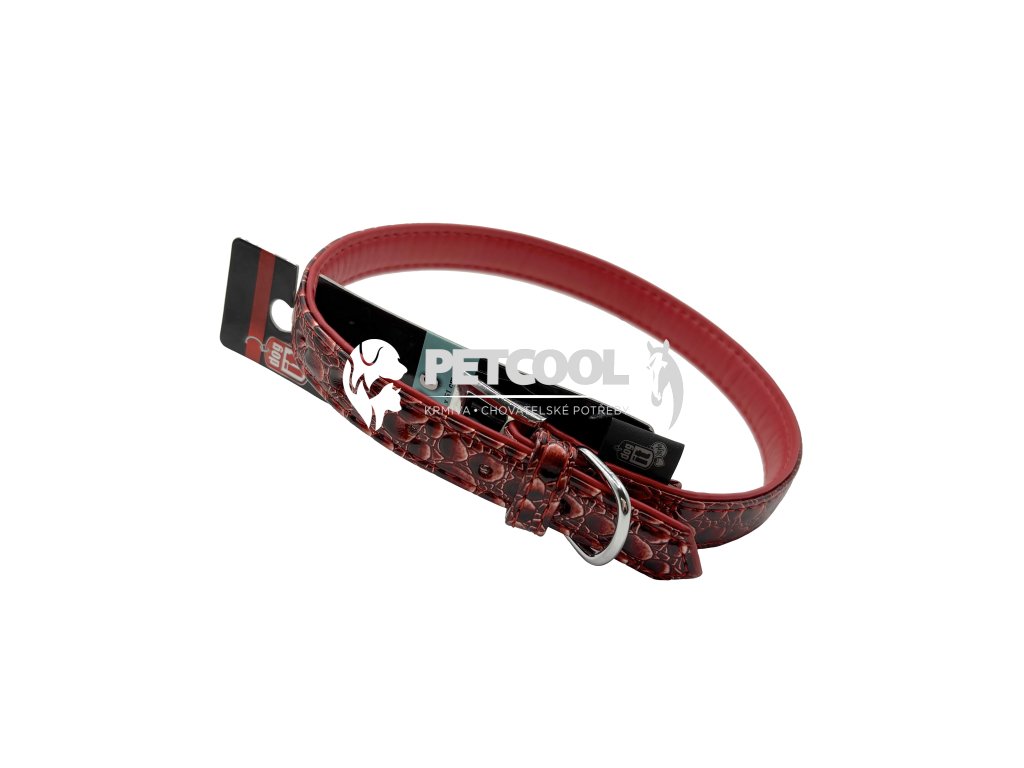 Obojek z příjemné eko kůže ve strukturovaném lesklém provedení v imitaci hadí kůže. Obojek je sešitý ze dvou popruhů s vnitřní výplní. Zapínání je na klasickou přezku a dírky. Pro připnutí vodítka je "D" éčko.