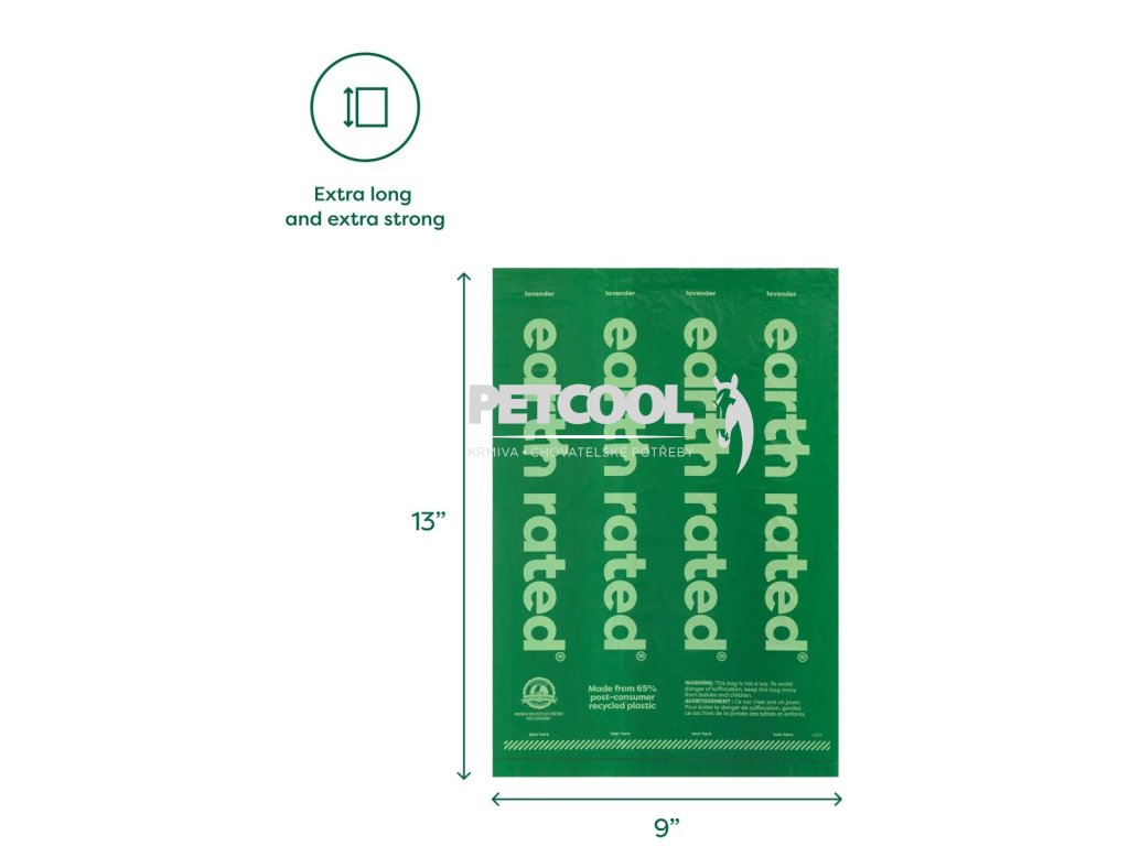 Recyklovatelné velké sáčky na exkrementy bez vůně jsou šetrné k životnímu prostředí. Lze kombinovat i se zásobníkem Earth Rated. Vyrobeno z 65 % certifikovaného recyklovaného plastu, což dává druhý život více než 2.2 milionu kilogramů plastu, který se každoročně usazuje na skládkách.