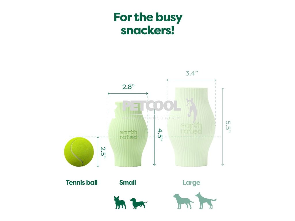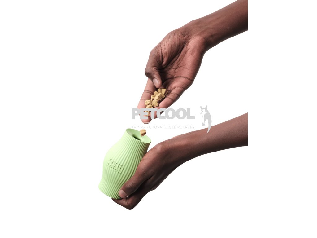 Navrženo k naplnění suchými pamlsky. Zabaví psa na dlouhé a nudné chvíle. Žebrovaný ergonomický design umožňuje psům uchopit a držet pamlsek jako kost. Kutálí se, kroutí a pohybuje se nečekanými způsoby a poskytuje tak mentální stimulaci. Vyrobeno z odpovědně získaného přírodního kaučuku PEFC/26-31-197. Hračku lze zakoupit ve dvou velikostech.