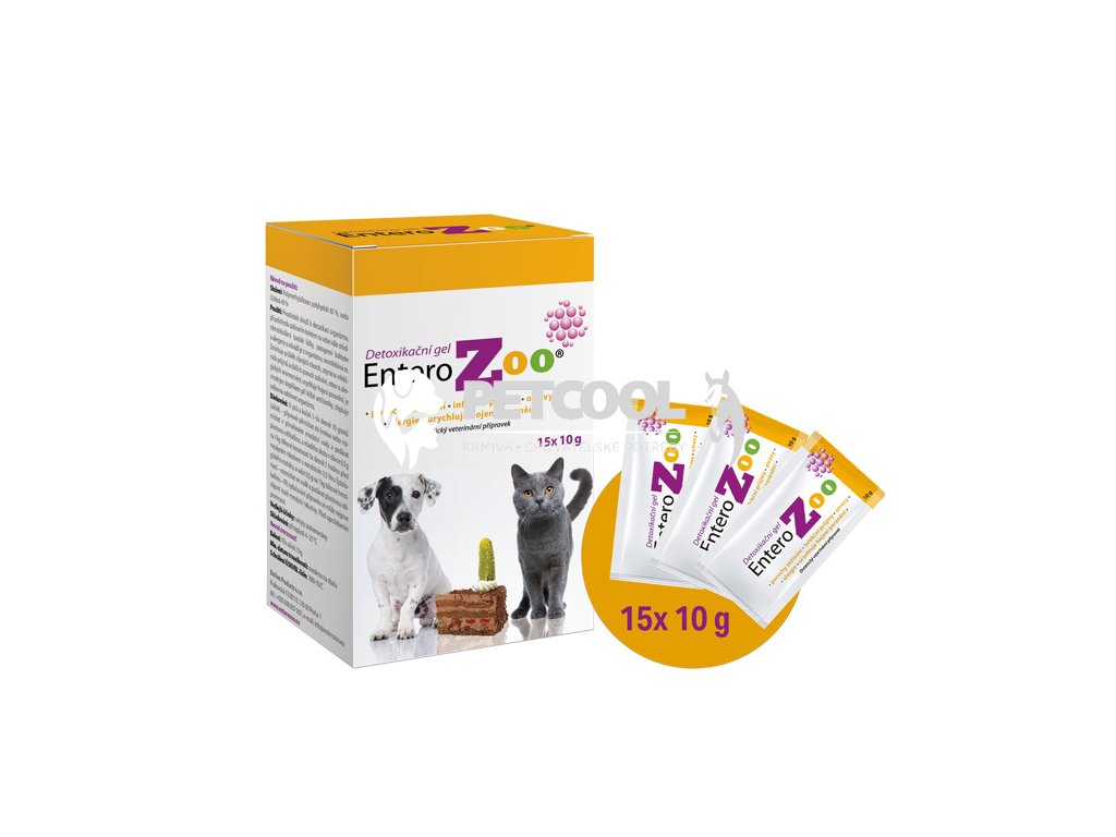 EnteroZOO funguje jako "chytrá" houba s póry, jejichž velikost odpovídá velikosti molekul většiny škodlivých látek. Většinu prospěšných látek nesorbuje. Je to přípravek tvořený organickým minerálem a čistou vodou. Jeho aktivní látkou je polymerní organická křemičitá sloučenina s názvem Polymethylsiloxan polyhydrát. Díky adsorpčním schopnostem je přípravek pro domácí a hospodářská zvířata schopen vázat na sebe škodlivé látky a toxiny, takzvaně organismus zbaví intoxikace z různých příčin a umožňuje velmi rychle zlepšit stav zvířete. Paníčci už si tak nemusí lámat hlavu s tím, co dělat, když jejich štěně má průjem nebo zvrací a nechce jíst nebo přinejhorším se něčím otrávilo.
