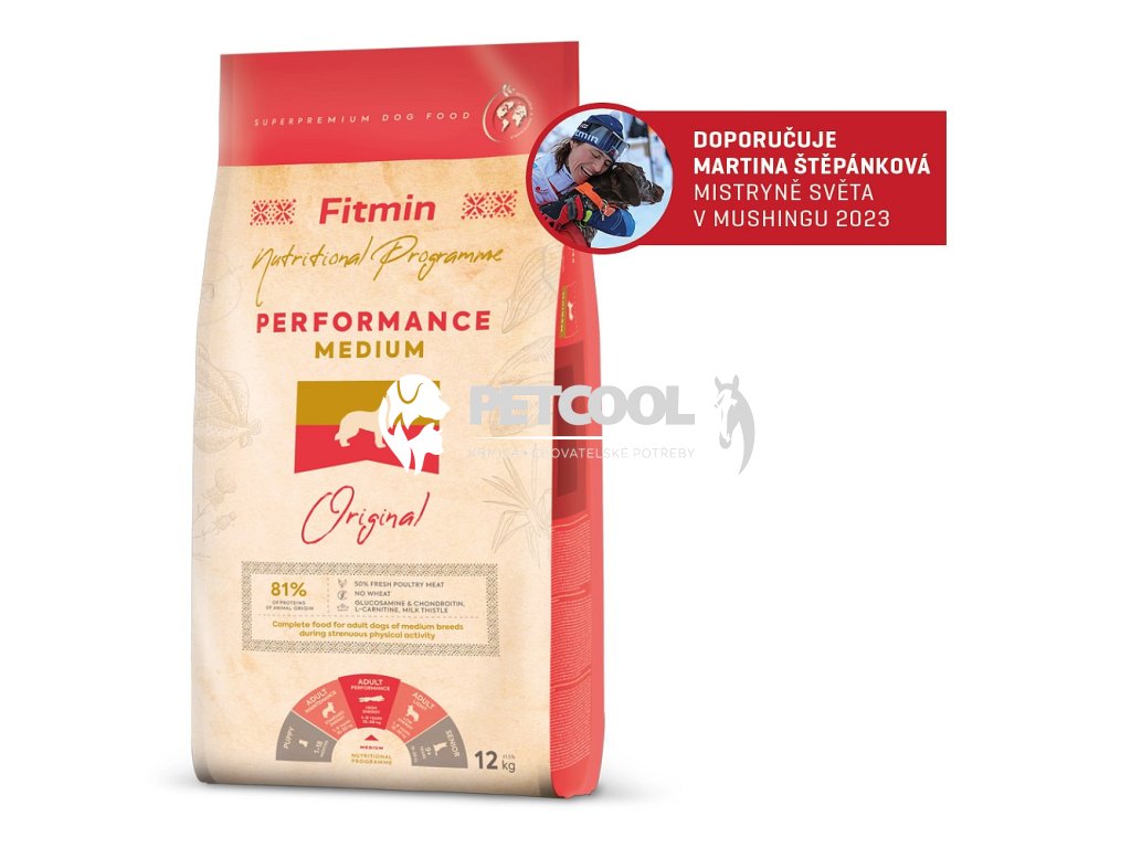 Fitmin MEDIUM PERFORMANCE - kompletní superprémiové krmivo pro dospělé psy středních plemen. Pro psy aktivně a sportovně založené, i pro psy v zimním období.