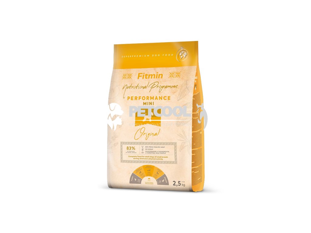Fitmin MINI PERFORMANCE - kompletní superprémiové krmivo pro dospělé psy mini a malých plemen. Pro psy aktivně a sportovně založené, i pro psy v zimním období.