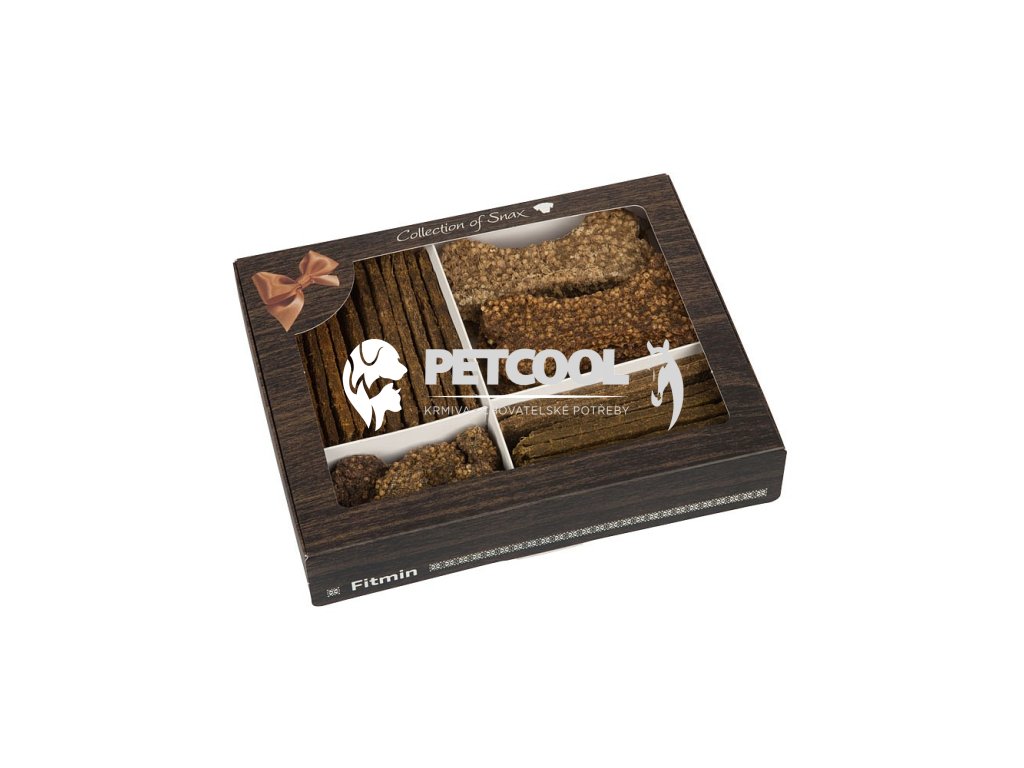 Kolekce křupavých masových pamlsků je ideálním dárkem pro psího mazlíčka. Nabízí psům osm druhů zdravých pamlsků s vysokým podílem masa (až 85 %). Všechny Snaxy jsou ručně vyráběny přímo v podhůří Orlických hor z těch nejlepších surovin a jsou zabaleny v dárkové papírové krabici s okénkem. Bonboniéra pro psy obsahuje všechny typy pamlsků Fitmin dog Purity Snax, které jsou přírodní, bezlepkové, plné čerstvého masa a vyrábí se pozvolným sušením, aby se zachovalo maximum výživných látek.