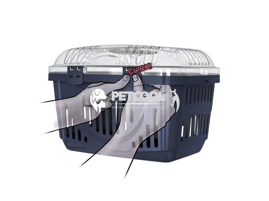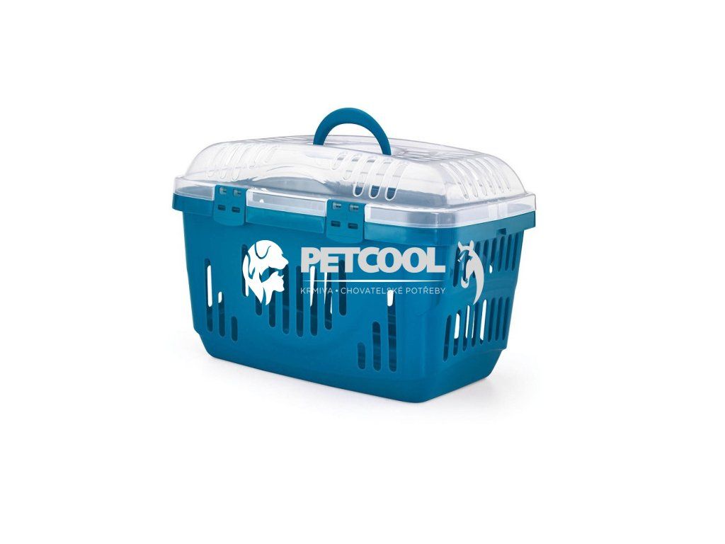 Plastová vzdušná přepravka pro malé psy, kočky nebo jiná menší zvířata do 8 kg. Vrchní otvírání zajišťuje neomezující přístup ke zvířeti. Zapínání horního víka je na dva plastové klipy.