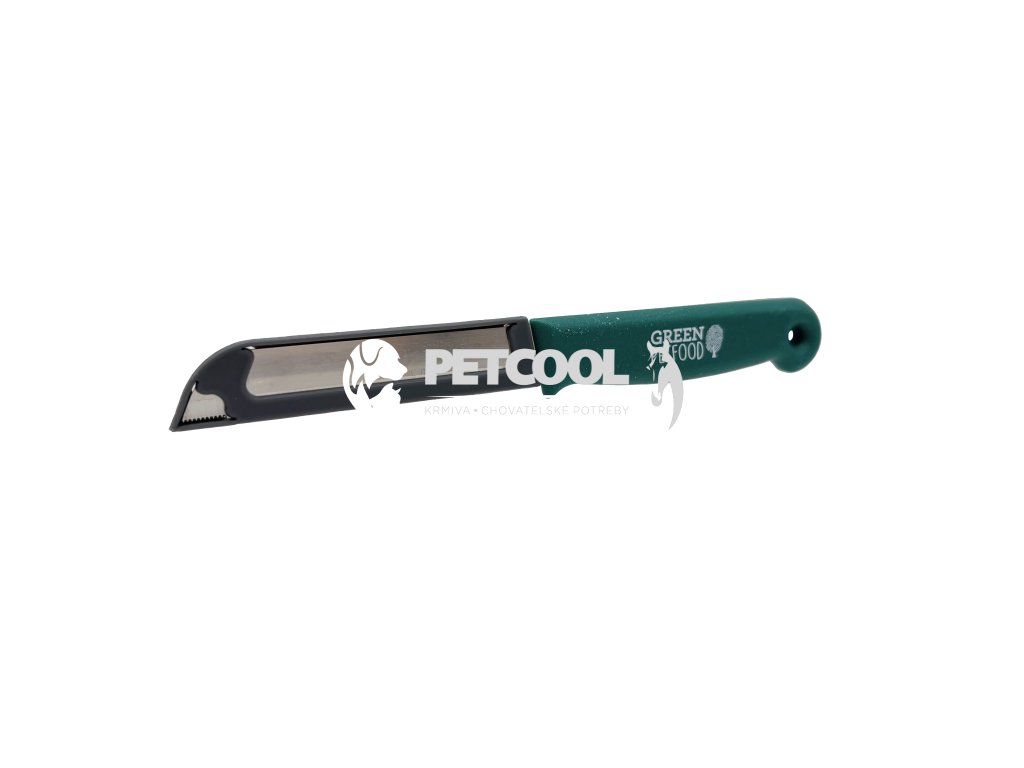 Kuchyňský nůž. Praktický nůž jako pomocník do stáje, do místnosti na přípravu krmiva, atd. Samozřejmě lze jej použít i do běžné domácí kuchyně. Nůž má kvalitní čepel Solingen.