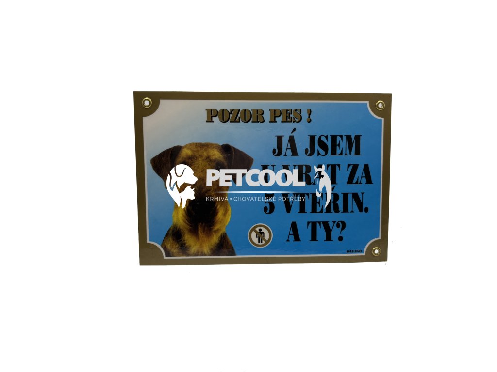 Plastová cedulka na plot s nápisem POZOR PES! JÁ JSEM U VRAT ZA 5 VTEŘIN. A TY?