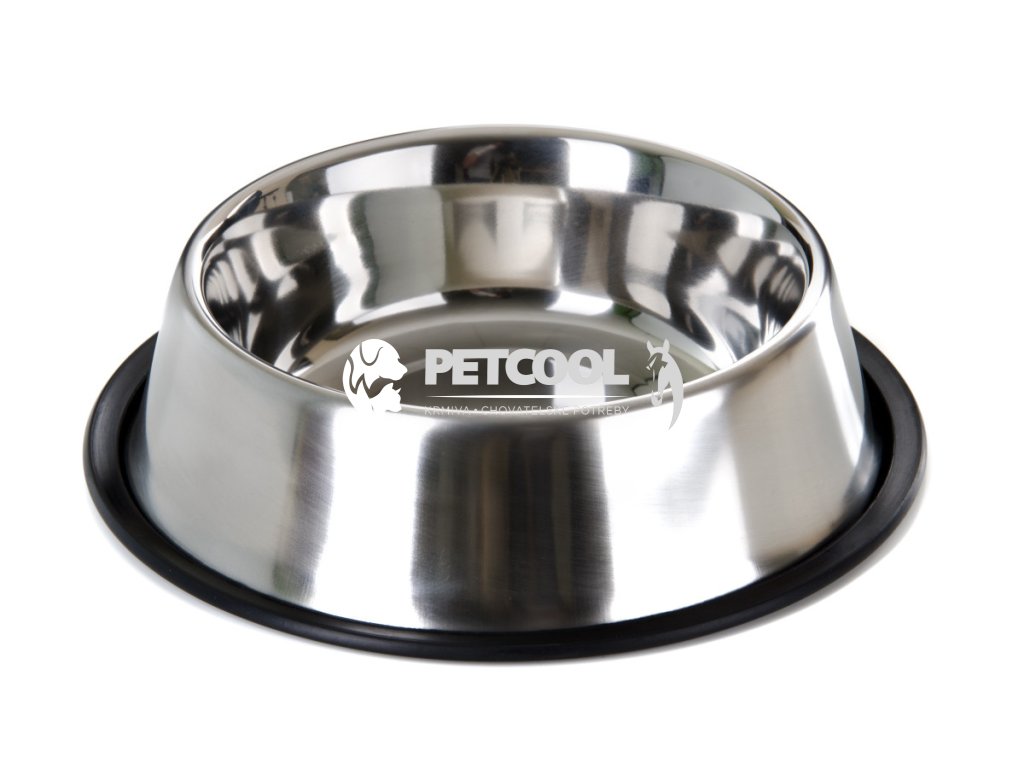 Nerezová miska s protiskluzovou gumou po obvodu misky. Guma je snímatelná, když je potřeba misku umýt nebo dát do myčky na nádobí. Nerezová miska má dlouhou životnost a snadno se udržuje.
