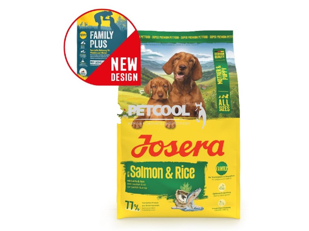 Granule JOSERA MOTHER&PUPPY WITH SALMON&RICE (NAHRAZUJE FAMILY PLUS) jsou malé granule určené speciálně pro březí nebo kojící feny, ale je možné ho podávat i kojeným štěňatům. Krmivo kombinuje zvýšené množství energie a bílkovin se směsí živin obsahujících antioxidanty. Cenné živiny podporují vývoj plodu v matčině těle a poté se transformují do mateřského mléka. Současně mohou malé granule sloužit jako krmivo pro kojená štěňata. Namočené do mléka či vody usnadní přechod na pevnou stravu. Nenasycené mastné kyseliny z lososa podporují vývoj mozku malých pejsků. Receptura obsahující velké množství bílkovin podporuje správný vývoj svalstva v růstové fázi. Taurin a L-karnitin jsou látky důležité pro srdeční činnost a přispějí k dobré kondici feny i štěněte.