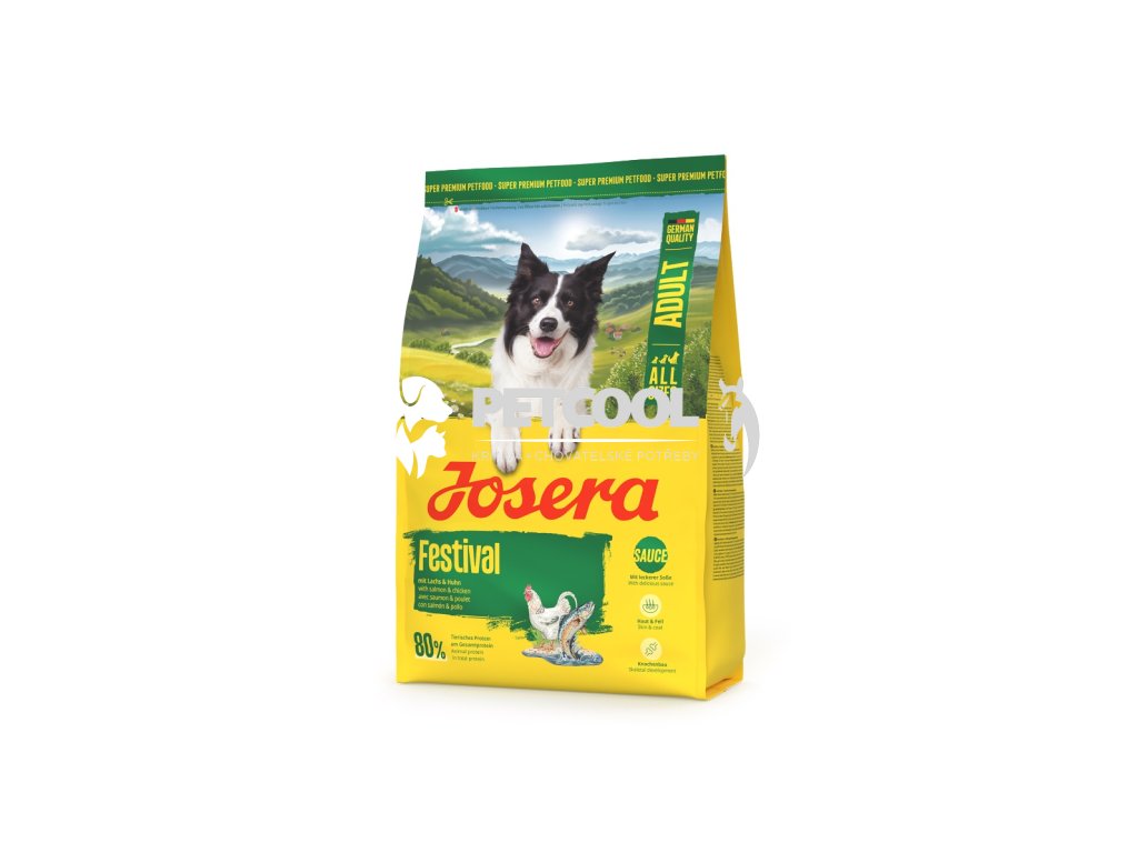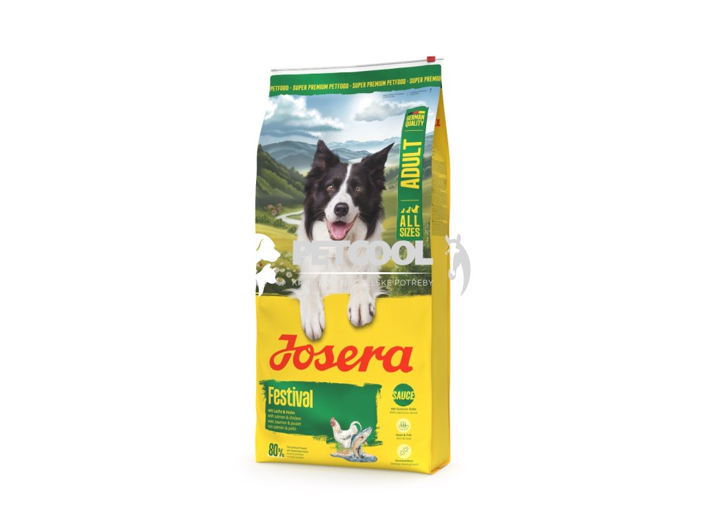 JOSERA FESTIVAL jsou bezlepkové obzvlášť aromatické a chutné křupavé granule s práškovou omáčkou nabízejí dospělému náročnému pejskovi jedinečný chuťový zážitek jak v suché, tak i mokré formě. Vyvážená receptura s lososem je bohatá na energii pro aktivní a sportovně založené psy všech plemen. Různé a snadno absorbovatelné výživové látky se postarají o pohodu a aktivitu. Vyznačuje vyváženým obsahem vápníku, fosforu, vitamínu C, manganu a mědi. Tento komplex vitálních látek se postará o silnou stavbu kostí a zdravé klouby. Cenné mastné kyseliny, zinek a měď zlepšují zdraví kůže a lesklost srsti. Při podávání namáčených granulí, vznikne z prášku lahodná omáčka.