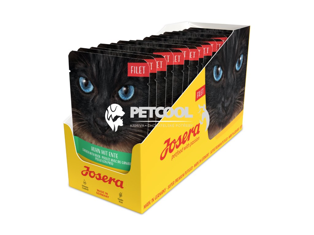 Lahodná masová varianta se 40 % šťavnatých kousků kuřecích prsou a kachního srdce. Ideální pro denní bezobilnou stravu zdravých a citlivých koček. Cílený výběr ingrediencí podporuje hodnotu pH 6-6.5 a tím může působit proti tvorbě močových kamenů. Díky vysokému obsahu masa, chutným vnitřnostem a cenným vitamínům a minerálům je Josera Filet ideálním kompletním krmivem bez obilovin pro nejen náročné kočky.