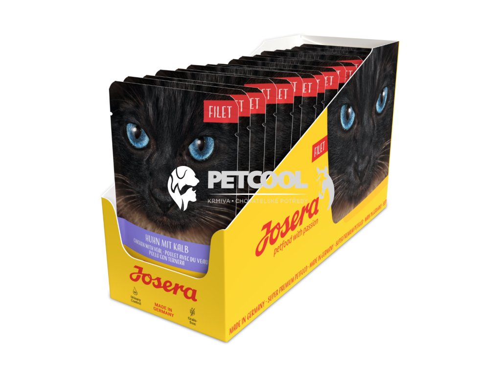 Lahodná masová varianta se 40 % šťavnatých kousků kuřecích prsou a telecí srdce a plíce. Ideální pro denní bezobilnou stravu zdravých a citlivých koček. Cílený výběr ingrediencí podporuje hodnotu pH 6-6.5 a tím může působit proti tvorbě močových kamenů. Díky vysokému obsahu masa, chutným vnitřnostem a cenným vitamínům a minerálům je Josera Filet ideálním kompletním krmivem bez obilovin pro nejen náročné kočky.