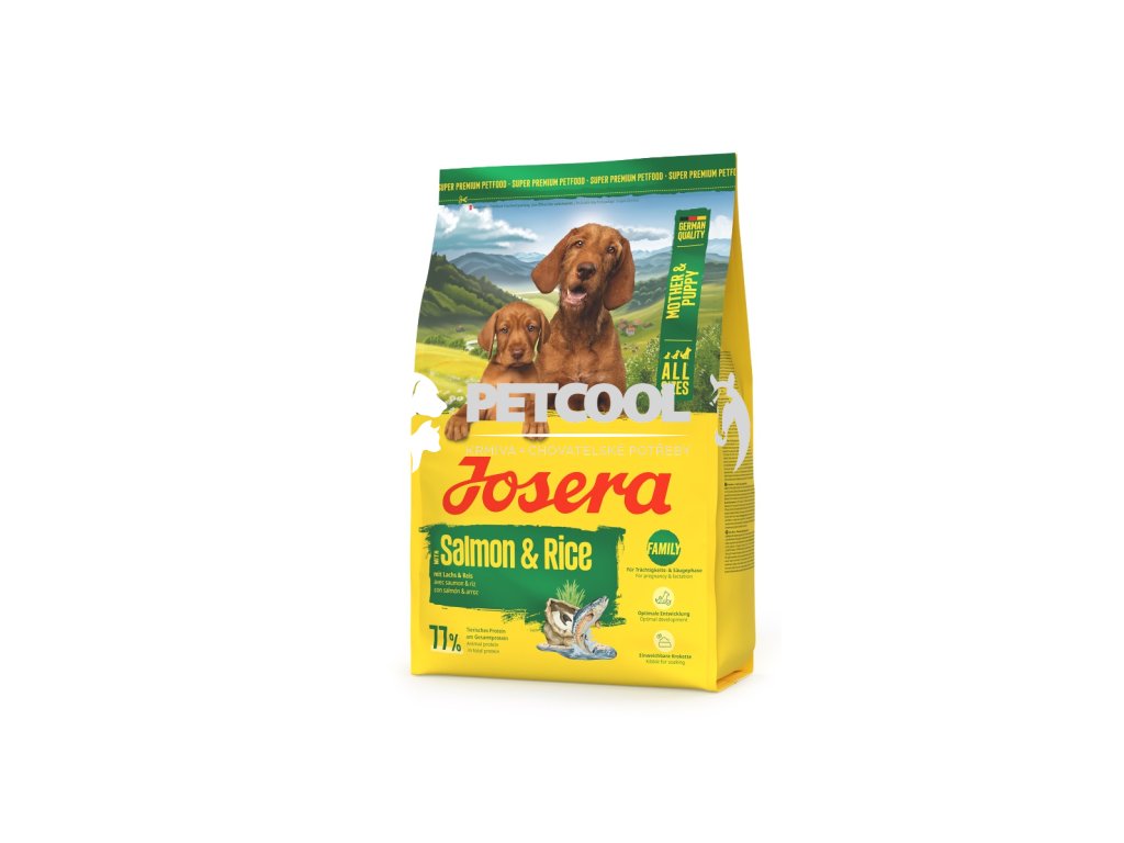 JOSERA MOTHER&PUPPY WITH SALMON&RICE (NAHRAZUJE FAMILY PLUS) jsou malé bezlepkové granule určené speciálně pro březí nebo kojící feny, ale je možné je podávat i kojeným štěňatům. Krmivo kombinuje zvýšené množství energie a bílkovin se směsí živin obsahujících antioxidanty. Cenné živiny podporují vývoj plodu v matčině těle a poté se transformují do mateřského mléka. Toto vysokoenergetické krmivo pro psy také splňuje speciální potřeby feny od poslední třetiny březosti až do konce laktace. Současně mohou malé granule sloužit jako krmivo pro kojená štěňata. Namočené do mléka či vody usnadní přechod na pevnou stravu. Nenasycené mastné kyseliny z lososa podporují vývoj mozku malých pejsků. Receptura obsahující velké množství bílkovin podporuje správný vývoj svalstva v růstové fázi. Taurin a L-karnitin jsou látky důležité pro srdeční činnost a přispějí k dobré kondici feny i štěněte.