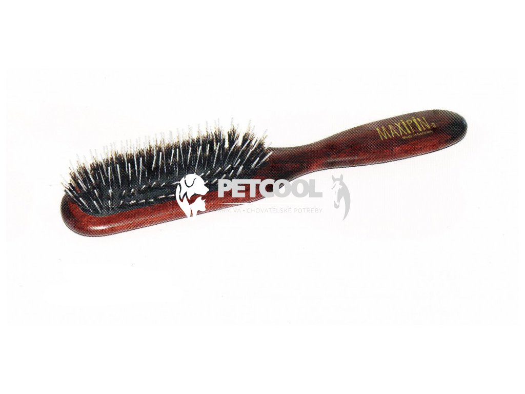 Kvalitní dřevěný kartáč KELLER, který přináší dokonalou kombinaci luxusu, pohodlí a precizního zpracování pro péči o srst zvířat. Velký oválný kartáč na srst s přírodními štětinami z divočáka z řady MAXI-PIN. Štětiny se snadno proplétají zvířecí srstí, aniž by poškozovali srst, a zároveň stimulují krevní oběh.
