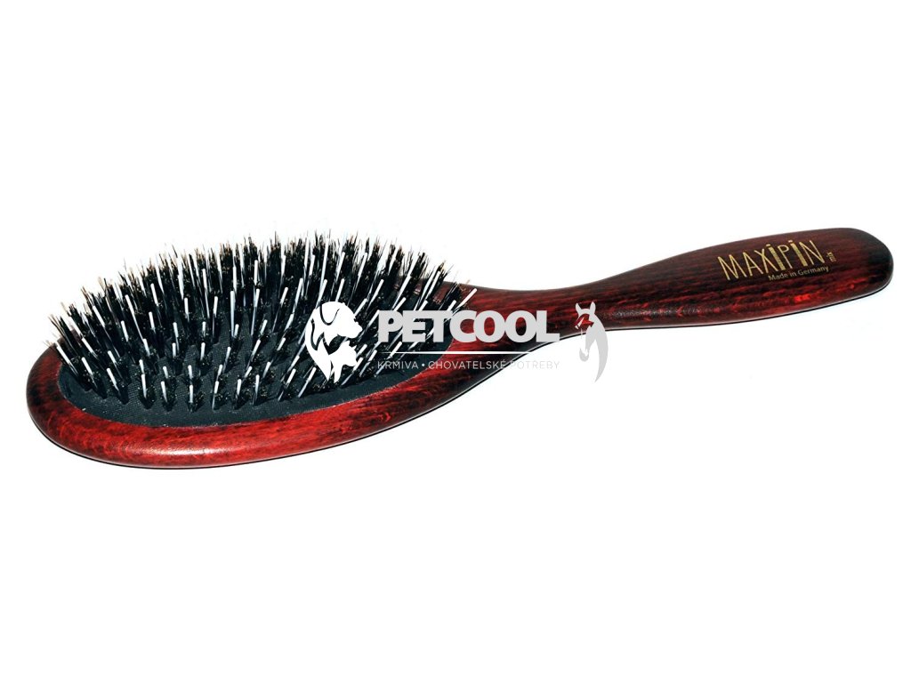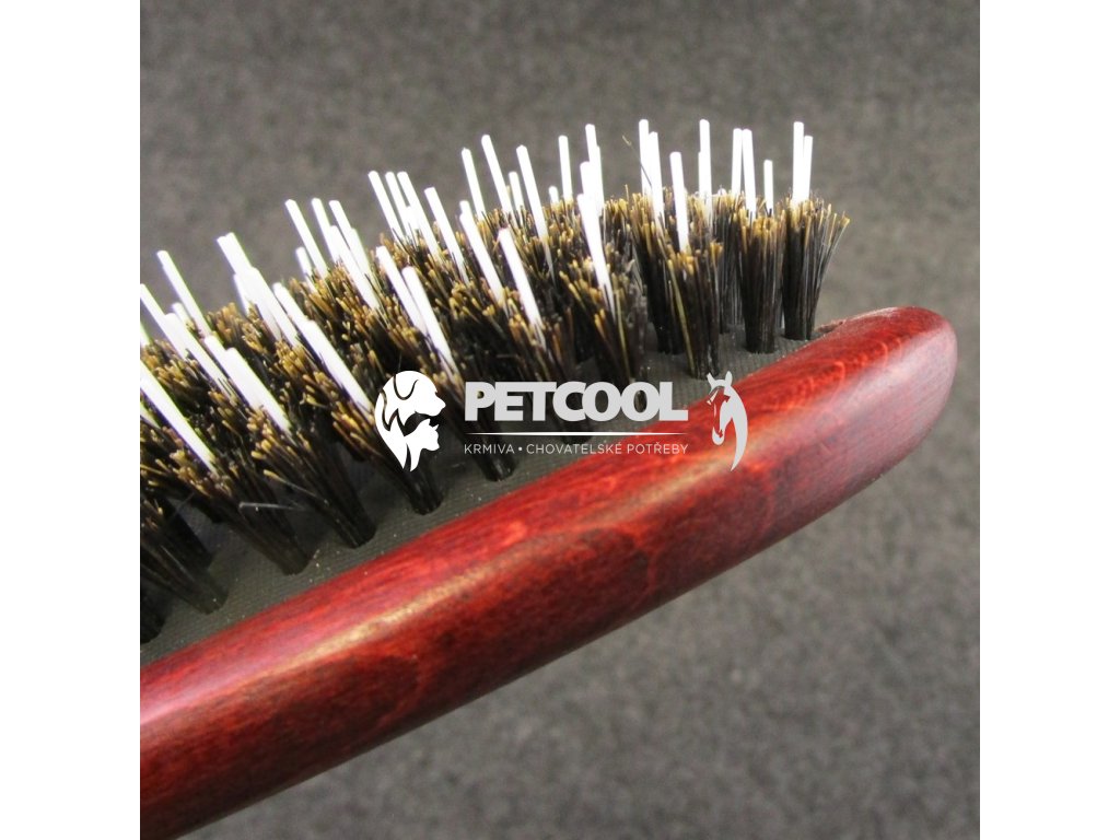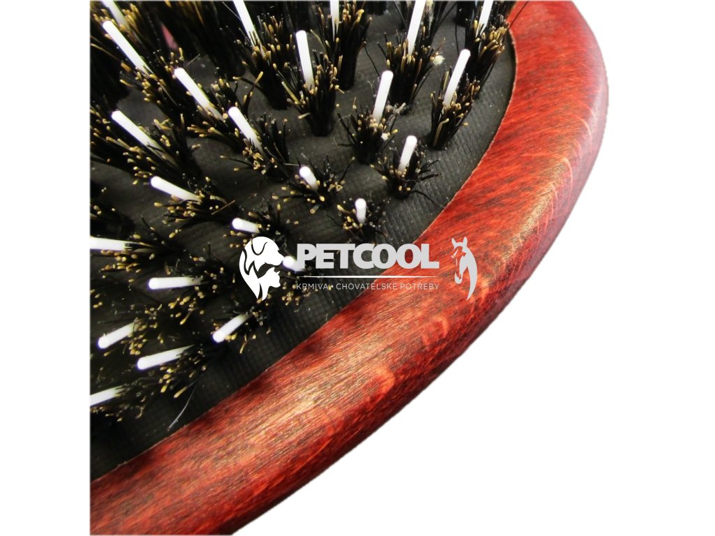 Kvalitní dřevěný kartáč KELLER, který přináší dokonalou kombinaci luxusu, pohodlí a precizního zpracování pro péči o srst zvířat. Velký oválný kartáč na srst s přírodními štětinami z divočáka z řady MAXI-PIN. Štětiny se snadno proplétají zvířecí srstí, aniž by poškozovali srst, a zároveň stimulují krevní oběh.