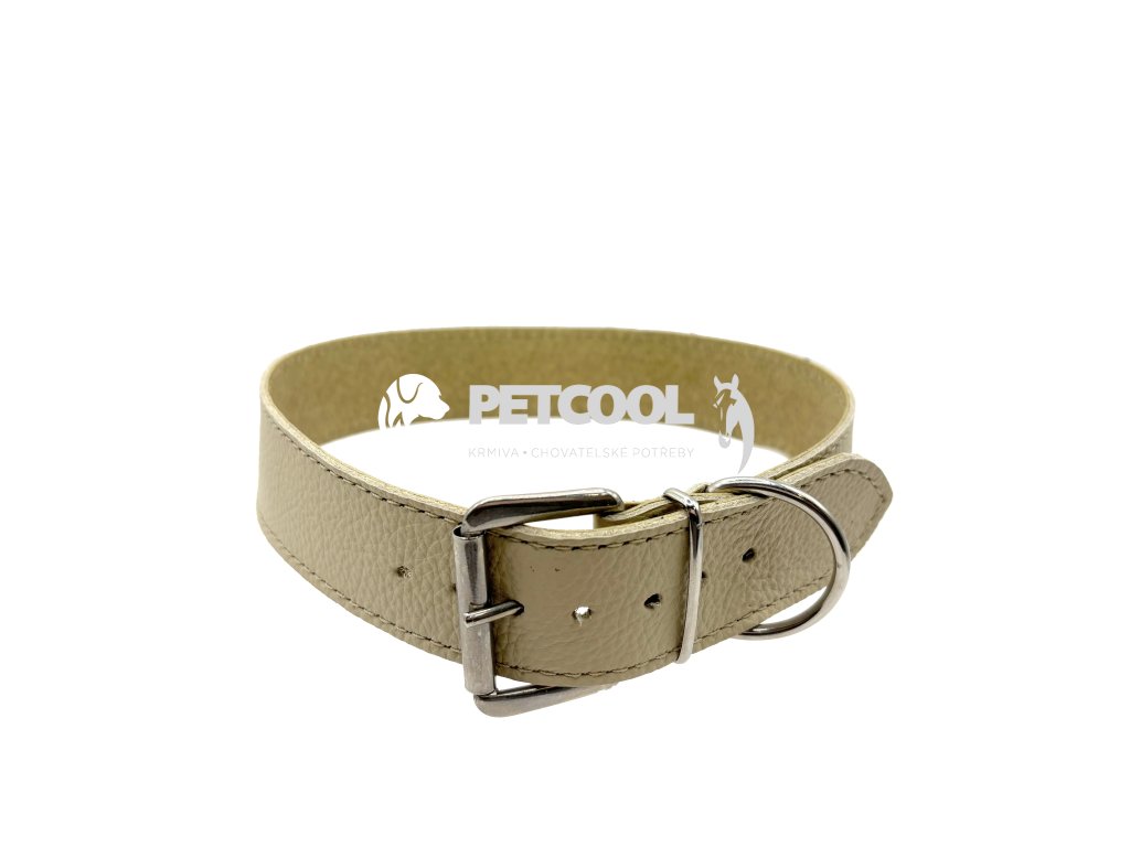 Kožený obojek z příjemné hovězí kůže ve strukturovaném provedení, podlepený. Zapínání je na klasickou přezku a dírky. Pro připnutí vodítka je svařované "D" éčko. Poctivá ruční výroba.