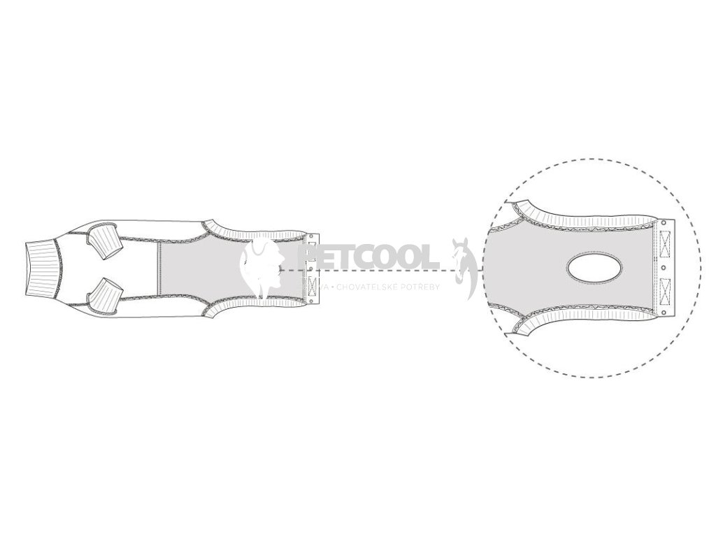 - větší otvor v oblasti ocasu, pro pohodlné vyměšování
