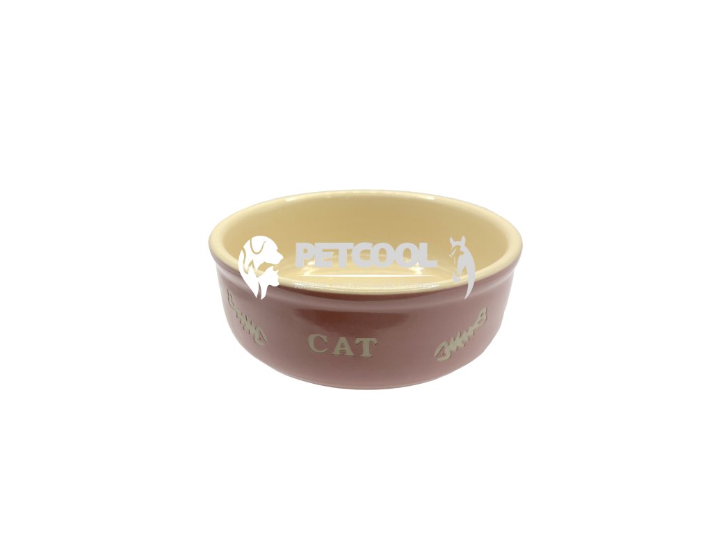 Keramická miska NOBBY CAT s motivem rybí kostry a nápisem "CAT". Těžká keramická miska po obvodu růžová s vyfrézovanými motivy. Uvnitř má miska barvu béžovou. U spodní hrany má miska praktické výlisky pro snadný úchop.
