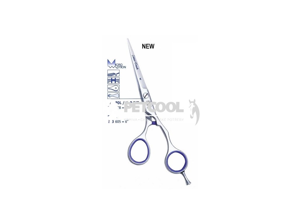 Vynikající profesionální nerezové celokovové kované nůžky, vyrobené z jedinečné originální solingenské oceli. Nůžky jsou velmi lehké, elegantní a excelentně vyvážené. Díky ergonomickému tvaru při částečném rozevření držadel, snižuje únavu a bolest rukou při celodenním stříhání a menší namáhání kloubu palce ruky. Tradičně zpracované s novou technologií.
