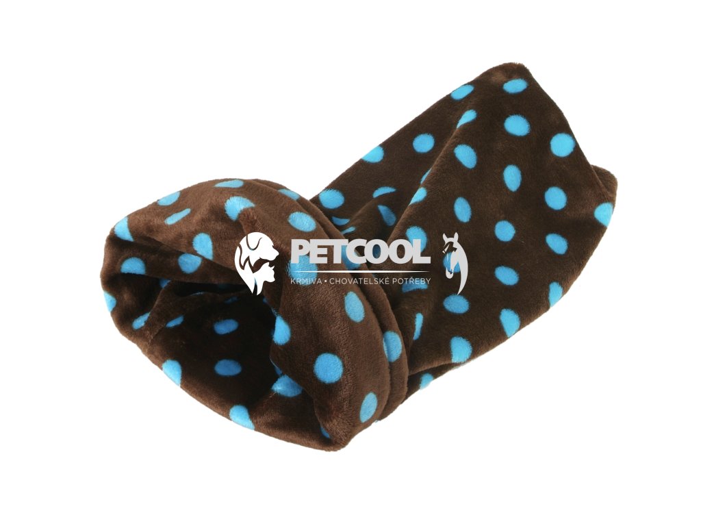 Kulatý pelíšek se stahovací šňůrkou v hnědé barvě s modrým puntíkem