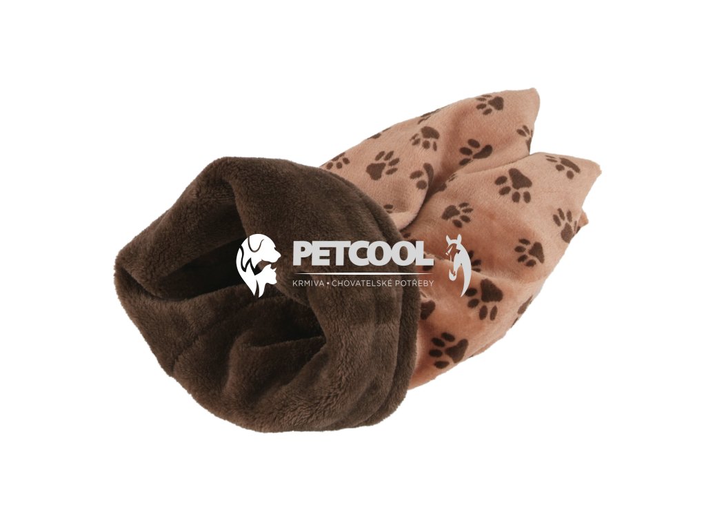 Oboustranná fleesová podložka s v hnědé barvě s motivem tlapky