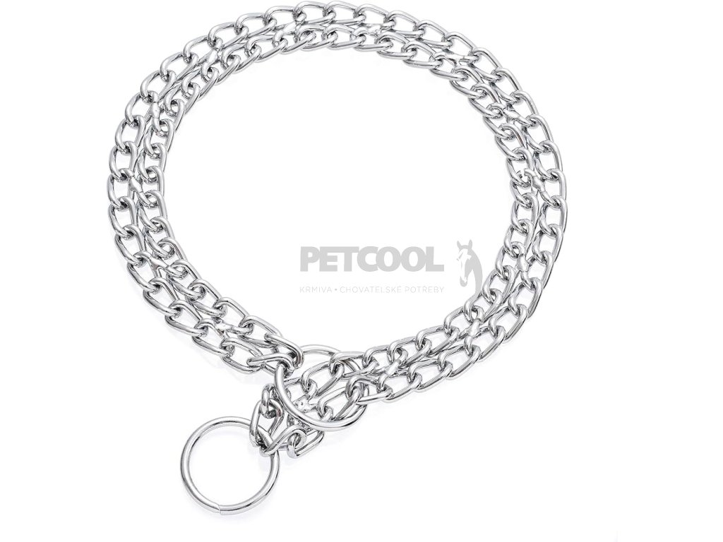 Nerezový stahovací dvouřadý obojek. Svařované články jsou zárukou pevnosti obojku. Jedna strana obojku je broušená do hladka, aby kulatina netlačila psa do krku.