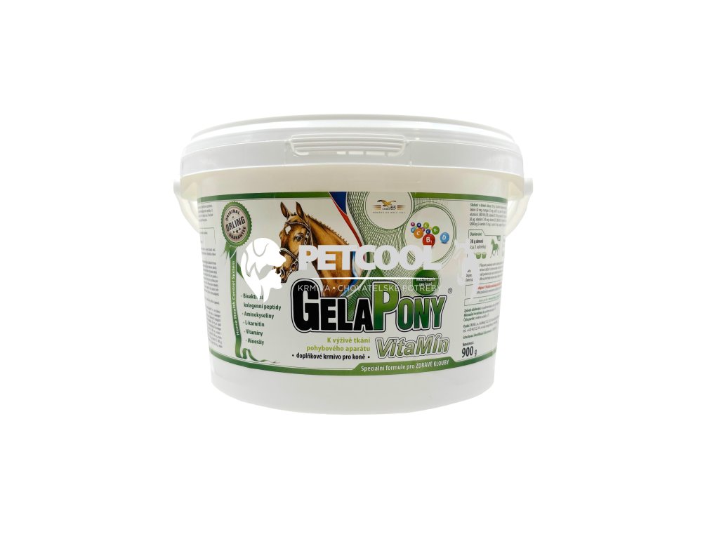 Gelapony® Vitamín je doplňkové krmivo pro koně v zájmovém chovu, dostihové koně, sportovní koně, představuje komplexní vitamino-minerální doplněk s bioaktivními kolagenními peptidy. Je vhodný pro denní doplňování vitamínů a minerálních látek do krmné dávky koní. Současně zajišťuje příjem bioaktivních kolagenních peptidů pro preventivní výživu pohybového aparátu. Neobsahuje žádné látky považované za doping koní. Jeho podávání je neomezené v průběhu celé sportovní přípravy i během závodů.