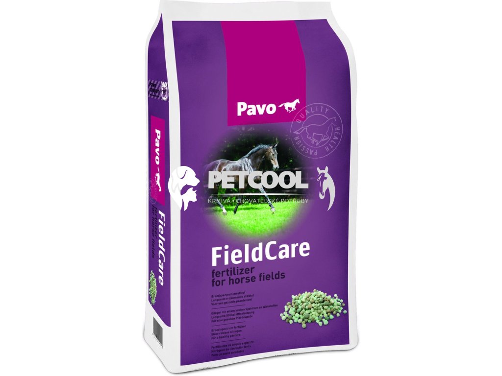 Pavo Field Care je hnojivo pro koňské pastviny. Když se koňské pastviny nehnojí, kvalita trávníku pomalu klesá. Pastvina se proto může pomalu proměnit v pole plné plevele. Zdravá koňská louka potřebuje dobré udržovací hnojení. Pavo FieldCare bylo vyvinuto speciálně pro tento účel: ideální hnojivo pro udržení dobrého a zdravého trávníku. Obsahuje speciální sloučeninu dusíku, která se uvolňuje pomalu (za 2-3 měsíce). Tráva tak roste i bez růstového spurtu, který je pro koně nežádoucí. Navíc obsahuje také fosfát, draslík, hořčík, síru a sodík, speciálně určené pro pastvinu pro koně.