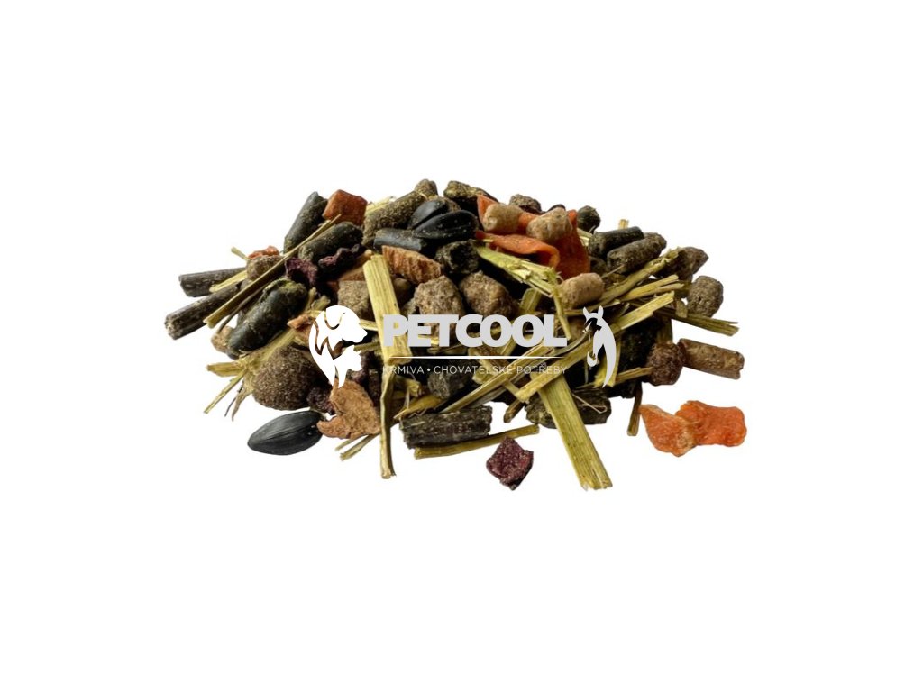 Obsahuje: | vojtěška, rýžové otruby, jablečná dřeň, třtinová melasa, atd. |