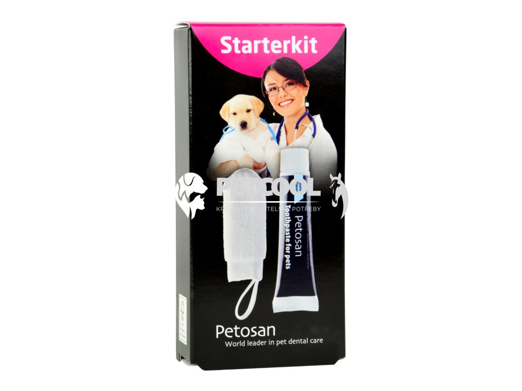 Startovací sada zubní pasty a kartáčku na prst PETOSAN pro ústní hygienu u psů, obohacená o příchuť kuřecího masa. Vyvinuto speciálně pro domácí mazlíčky k odstranění plaku a předcházení vzniku zubního kamen, a navíc bez nutnosti vyplachování. Zubní kartáček PETOSAN na prst, z mikrovlákna. Přítomnost iontů stříbra a mědi v mikrovláknu, zajišťuje antimikrobiální funkce produktu. Jednoduché použití, ideální pro osvojení si každodenní zubní hygieny. Doporučuje se používat prstový zubní kartáček po dobu 10-ti dnů a poté pokračovat s Petosan dvouhlavým kartáčkem. Po použití opláchněte pod tekoucí vodou a sušte zavěšený pro zachování měkkosti a jemnosti.