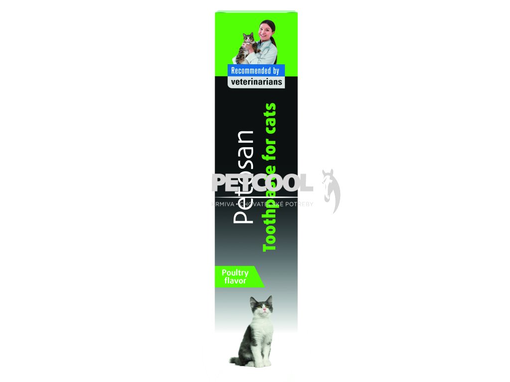 Zubní pasta PETOSAN pro ústní hygienu u koček, obohacená o příchuť drůbežího masa. Vyvinuto speciálně pro domácí mazlíčky k odstranění plaku a předcházení vzniku zubního kamen, a navíc bez nutnosti vyplachování.