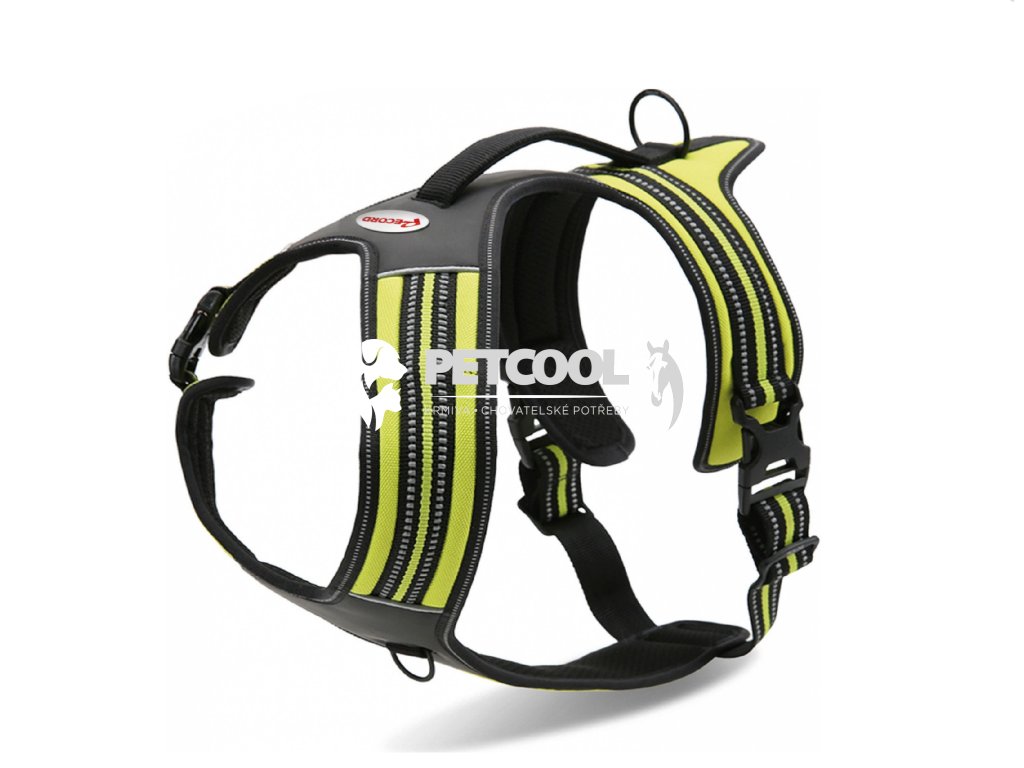 Nylonový postroj pro psy od italské značky RECORD v reflexní barvě. Alpi postroj pro psy s výkonem. Tento postroj je pevností a bezpečností. Celá řada Record Action je vyrobena z tkaného nylonu s reflexními pásky 3M Scotchlite. Podporuje vysokou nosnost, snižuje riziko tření a ponechává psovi maximální volnost pohybu. Dostupné v různých velikostech a barvách.