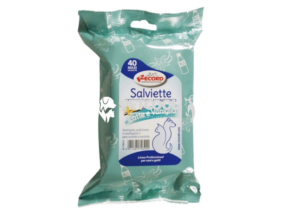 Vlhčené vonné ubrousky italského výrobce RECORD s vůní mléka a vanilky.