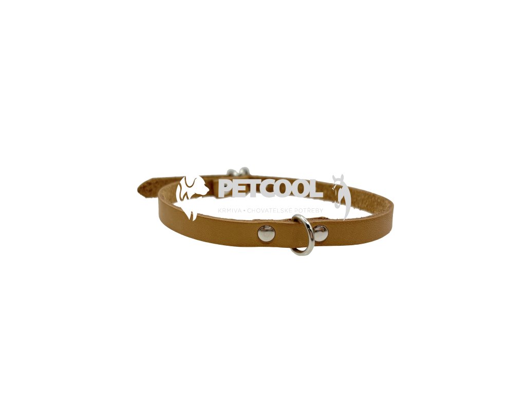 Kožený obojek pro malé psy z hovězí hladké kůže v přírodním barevném provedení, bez podšití. Zapínání je na klasickou přezku a dírky. Pro připnutí vodítka slouží svařované "D" éčko. Poctivá ruční výroba.