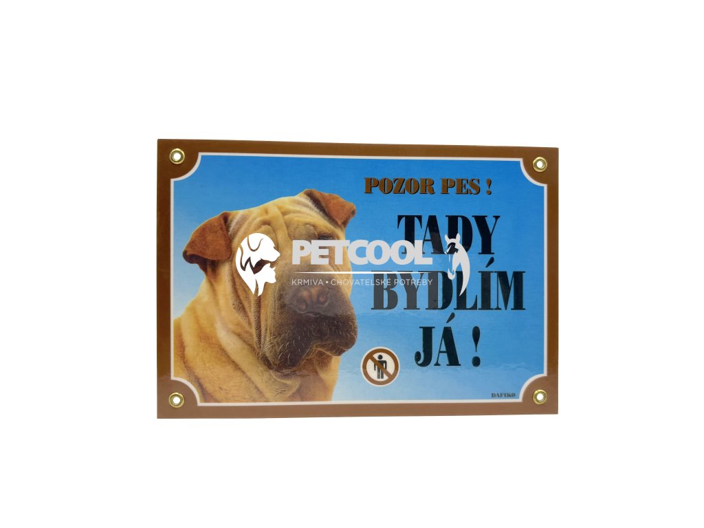 Plastová cedulka na plot s nápisem POZOR PES! TADY BYDLÍM JÁ!