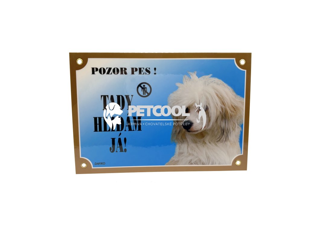 Plastová cedulka na plot s nápisem POZOR PES! TADY HLÍDÁM JÁ!