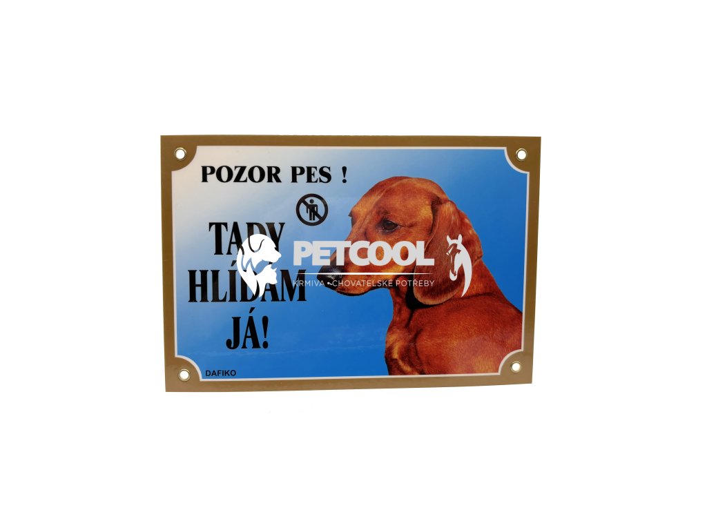 Plastová cedulka na plot s nápisem POZOR PES! TADY HLÍDÁM JÁ!