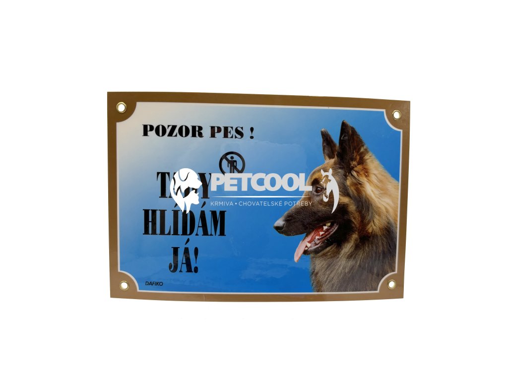 Plastová cedulka na plot s nápisem POZOR PES! TADY HLÍDÁM JÁ!