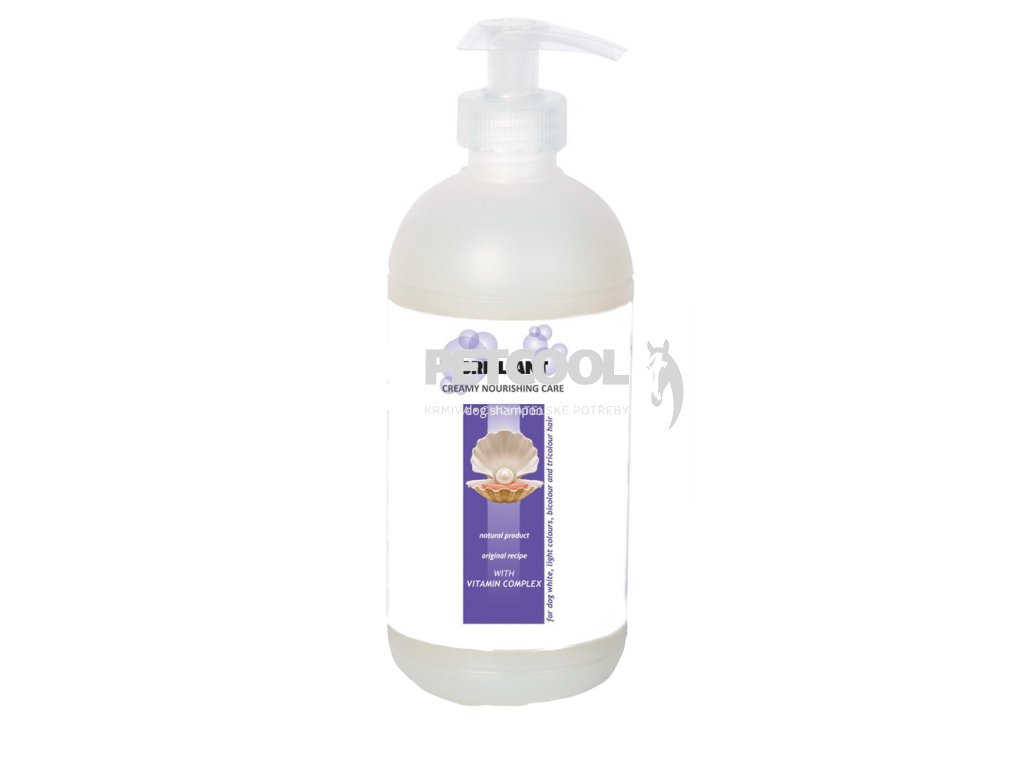 Krémový a výživný šampón pro psy. Zejména pro psy s bílou a světlou srstí, bicolor a trikolor. Obsahuje vitamínový komplex, který rozjasní bílou srst a rozzáří přirozené barevné odstíny. Lze použít i na vícebarevnou srst s převahou světlých odstínů.